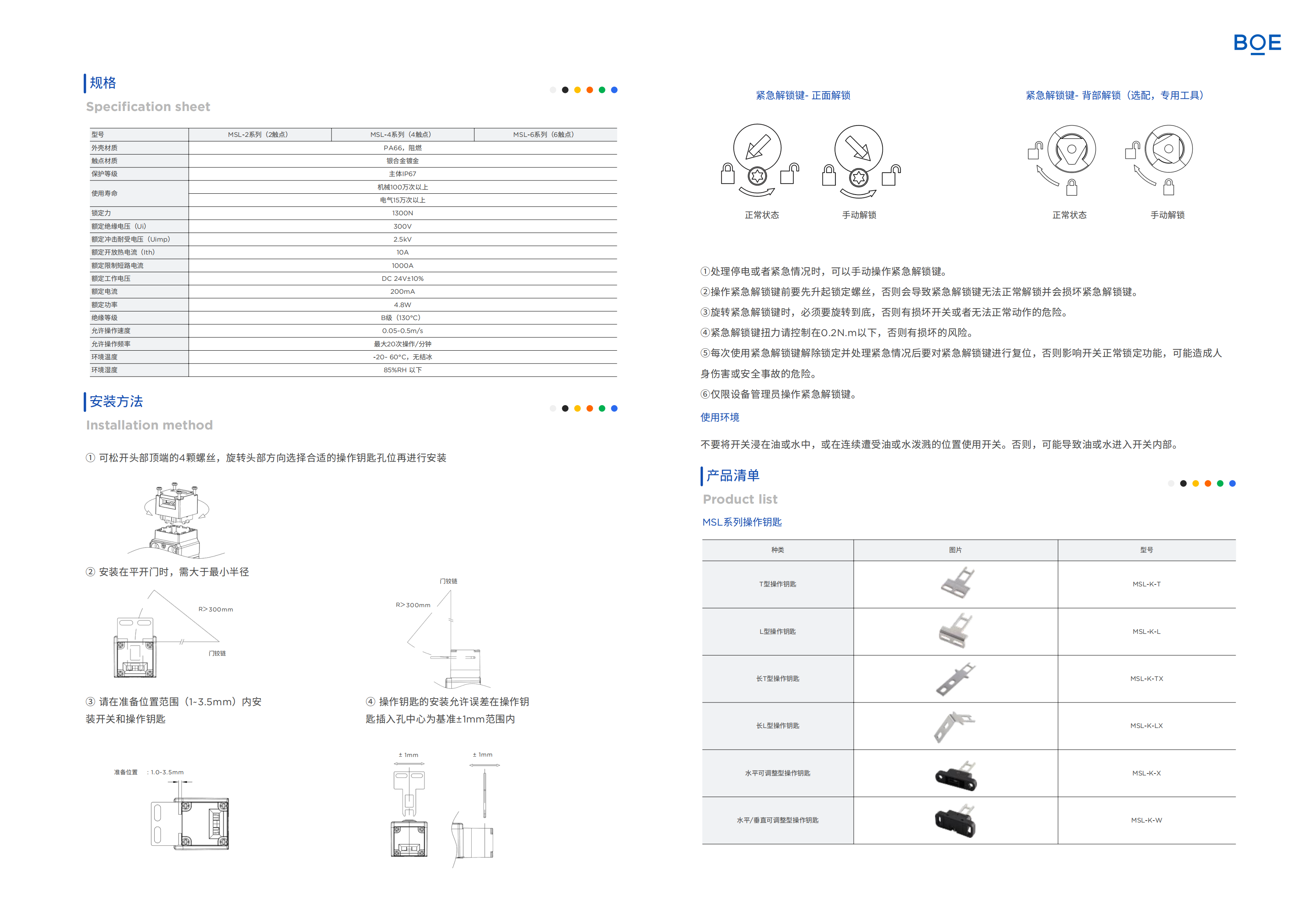 MSL安全门锁覆盖2/4/6镀金触点的多种组合;锁定力13OON,,,可选择配置指示灯、、紧急解锁、、、背部解锁;搭配多种钥匙;紧凑设计,,节省安装空间。。
