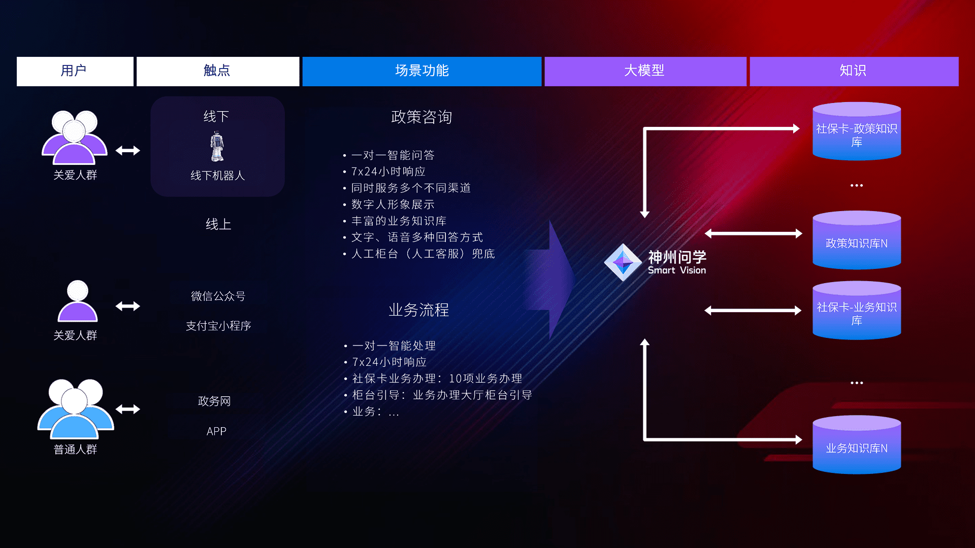 • 线上线下全覆盖:线上提供微信公众号、、、支付宝小程序、、、政务网、、app多种渠道,,,,与线下机器人形成完整服务体系。。。。
